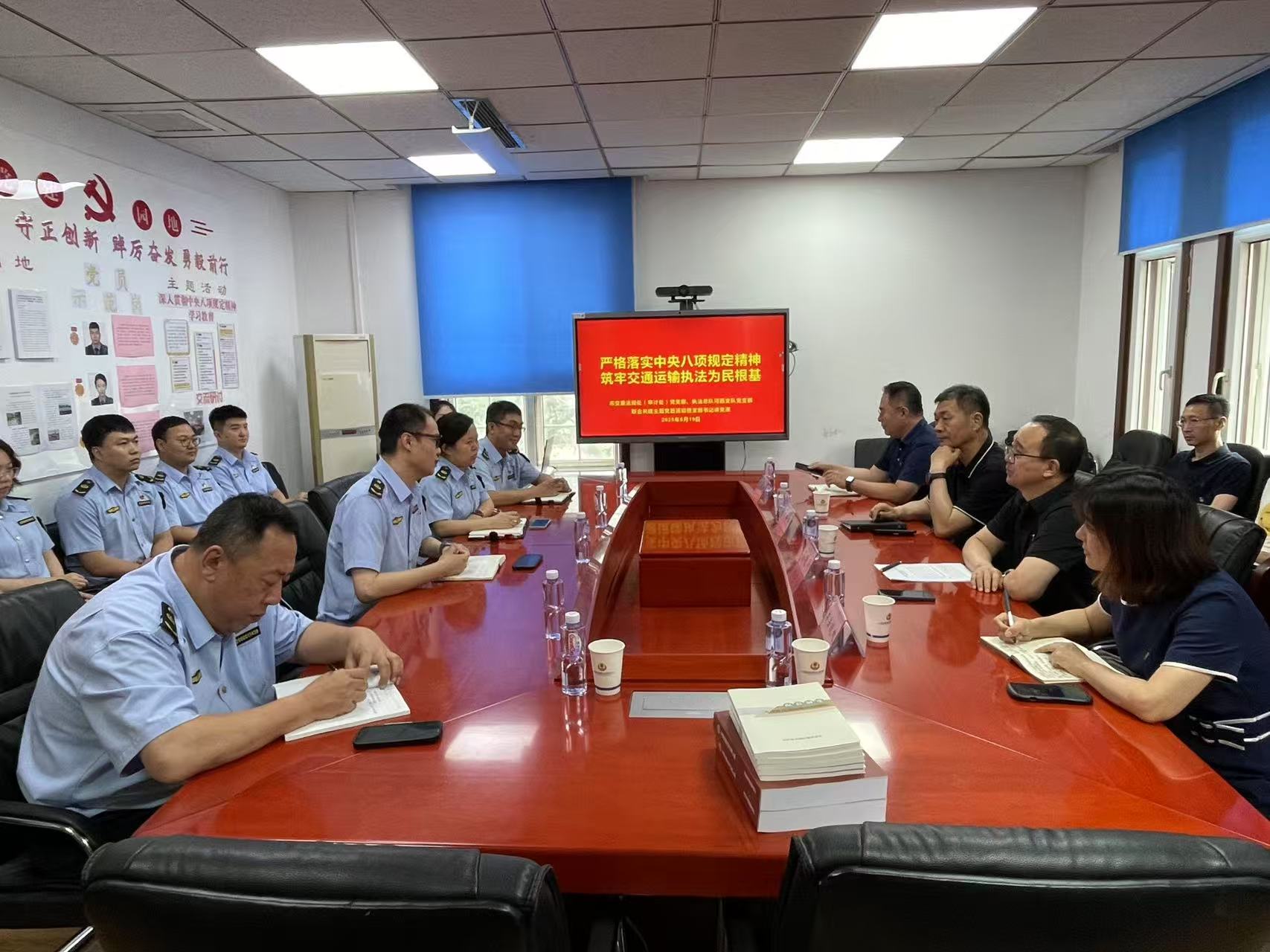 按照深入贯彻中央八项规定精神学习教育要求,为帮助党员深化认识、筑牢思想作风防线,6月19日,委法规处(审计处)党支部、执法总队河西支队党支部联合开展主题党日活动,委法规处(审计处)党支部书记孙明辉以“严格落实中央八项规定精神 筑牢交通运输执法为民根基”为题讲授专题党课。