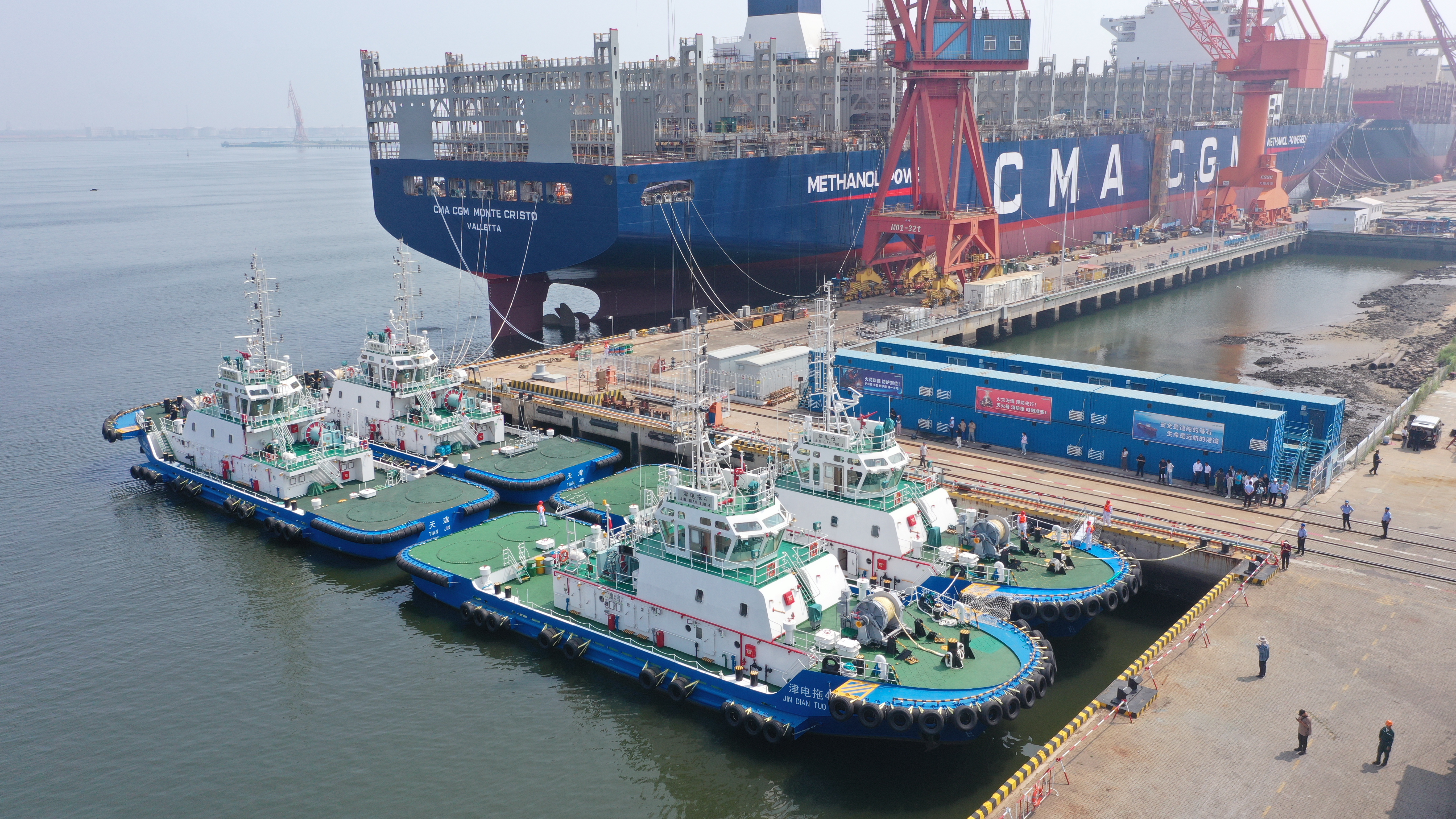 2025年8月13日,4艘纯电动港作拖轮组成“绿色舰队”在中船天津码头鸣笛启航,构成了目前我国北方规模最大的纯电动拖轮船队,主要用于在天津港水域协助各类船舶进出港和靠离码头作业。